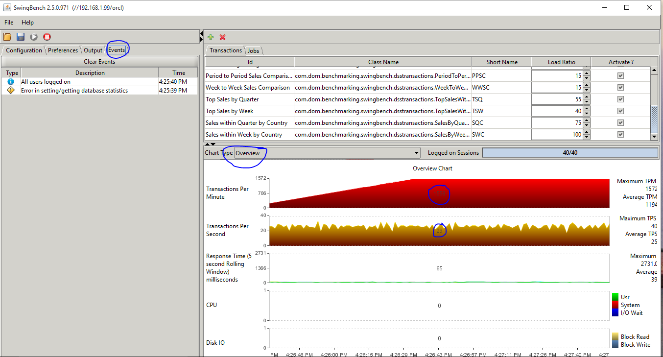 oracle@opensuse:~/RAT_workload> oracle@opensuse:~/RAT_workload> pwd /home/oracle/RAT_workload oracle@opensuse:~/RAT_workload> ls -lrt total 892 drwxr-xr-x 2 oracle oinstall 175 Feb 19 10:23 cap drwxr-xr-x 3 oracle oinstall 19 Feb 19 10:23 capfiles -rw-r--r-- 1 oracle oinstall 912327 Feb 19 10:23 rat_capture1.html oracle@opensuse:~/RAT_workload> echo $ORACLE_HOME /u01/app/oracle/product/12.1/dbhome oracle@opensuse:~/RAT_workload> echo $PATH /home/oracle/bin:/usr/local/bin:/usr/bin:/bin:/usr/bin/X11:/usr/games:/u01/app/oracle/product/12.1/dbhome/bin:/u01/app/oracle/product/12.1/oggcore_1:/u01/app/oracle/product/12.1/dbhome/bin:/u01/app/oracle/product/12.1/oggcore_1:/u01/app/oracle/product/12.1/dbhome/bin:/u01/app/oracle/product/12.1/oggcore_1 oracle@opensuse:~/RAT_workload> # Step 1 oracle@opensuse:~/RAT_workload> java -classpath $ORACLE_HOME/jdbc/lib/ojdbc7.jar:$ORACLE_HOME/rdbms/jlib/dbrparser.jar:$ORACLE_HOME/rdbms/jlib/dbranalyzer.jar: oracle.dbreplay.workload.checker.CaptureChecker /home/oracle/RAT_workload jdbc:oracle:thin:@192.168.56.131:1521:susedb12 Enter database username: opensuse Enter password: Importing AWR data from directory '/home/oracle/RAT_workload' Capture ID: 61 AWR dbid: 1392077117 Snapshots range: 50 -> 51 AWR import is done! Analysis done! oracle@opensuse:~/RAT_workload> ls -lrt total 900 drwxr-xr-x 3 oracle oinstall 19 Feb 19 10:23 capfiles -rw-r--r-- 1 oracle oinstall 912327 Feb 19 10:23 rat_capture1.html drwxr-xr-x 2 oracle oinstall 195 Feb 19 10:26 cap -rw-r--r-- 1 oracle oinstall 1148 Feb 19 10:27 wcr_cap_analysis.xml -rw-r--r-- 1 oracle oinstall 3881 Feb 19 10:27 wcr_cap_analysis.html oracle@opensuse:~/RAT_workload> sqlplus / as sysdba SQL*Plus: Release 12.1.0.2.0 Production on Fri Feb 19 10:41:30 2016 Copyright (c) 1982, 2014, Oracle. All rights reserved. Connected to: Oracle Database 12c Enterprise Edition Release 12.1.0.2.0 - 64bit Production With the Partitioning, OLAP, Advanced Analytics and Real Application Testing options SQL> -- Step 2 (1) SQL> -- Create directory object for further activities SQL> create or replace directory RAT_WORKLOAD as '/home/oracle/RAT_workload/'; Directory created. SQL> exec DBMS_WORKLOAD_REPLAY.PROCESS_CAPTURE (capture_dir => 'RAT_WORKLOAD'); PL/SQL procedure successfully completed. SQL> ! oracle@opensuse:~/RAT_workload> ls -lrt total 900 drwxr-xr-x 3 oracle oinstall 19 Feb 19 10:23 capfiles -rw-r--r-- 1 oracle oinstall 912327 Feb 19 10:23 rat_capture1.html drwxr-xr-x 2 oracle oinstall 195 Feb 19 10:26 cap -rw-r--r-- 1 oracle oinstall 1148 Feb 19 10:27 wcr_cap_analysis.xml -rw-r--r-- 1 oracle oinstall 3881 Feb 19 10:27 wcr_cap_analysis.html drwxr-xr-x 2 oracle oinstall 268 Feb 19 10:52 pp12.1.0.2.0 oracle@opensuse:~/RAT_workload> # A new directory pp12.1.0.2.0 has been created containing info oracle@opensuse:~/RAT_workload> # Step 2 (2) oracle@opensuse:~/RAT_workload> wrc replaydir=/home/oracle/RAT_workload mode=calibrate Workload Replay Client: Release 12.1.0.2.0 - Production on Fri Feb 19 22:14:27 2016 Copyright (c) 1982, 2014, Oracle and/or its affiliates. All rights reserved. Report for Workload in: /home/oracle/RAT_workload ----------------------- Recommendation: Consider using at least 1 clients divided among 1 CPU(s) You will need at least 150 MB of memory per client process. If your machine(s) cannot match that number, consider using more clients. Workload Characteristics: - max concurrency: 40 sessions - total number of sessions: 57 Assumptions: - 1 client process per 50 concurrent sessions - 4 client processes per CPU - 256 KB of memory cache per concurrent session - think time scale = 100 - connect time scale = 100 - synchronization = TRUE oracle@opensuse:~/RAT_workload> exit exit SQL> -- Step 2 (3) SQL> execute DBMS_WORKLOAD_REPLAY.INITIALIZE_REPLAY('test_replay_1', 'RAT_WORKLOAD'); PL/SQL procedure successfully completed. SQL> execute DBMS_WORKLOAD_REPLAY.PREPARE_REPLAY(SYNCHRONIZATION => 'OBJECT_ID'); PL/SQL procedure successfully completed. SQL> ! oracle@opensuse:~/RAT_workload> # Step 2 (4) oracle@opensuse:~/RAT_workload> # Starting 1 client process here. If you would like to start more, do so by starting using another session oracle@opensuse:~/RAT_workload> # This session will be used to monitor until Replay completes. oracle@opensuse:~/RAT_workload> wrc replaydir=/home/oracle/RAT_workload Workload Replay Client: Release 12.1.0.2.0 - Production on Fri Feb 19 22:19:29 2016 Copyright (c) 1982, 2014, Oracle and/or its affiliates. All rights reserved. Username:opensuse Password: Wait for the replay to start (22:19:44)